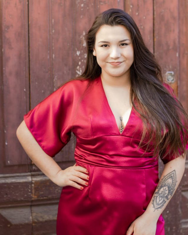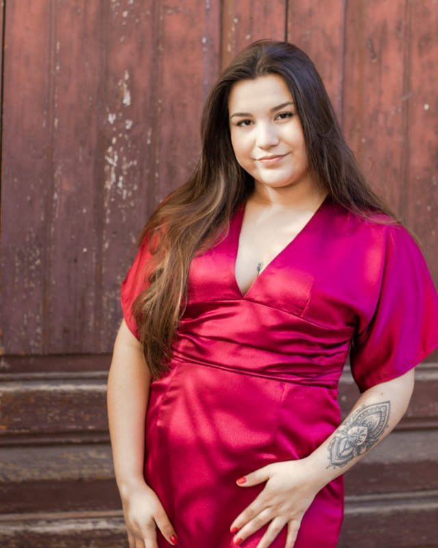 El tejido de Satén me parece el más idóneo para este diseño, deja ver todo el encanto del Drapeado en el Fajín.